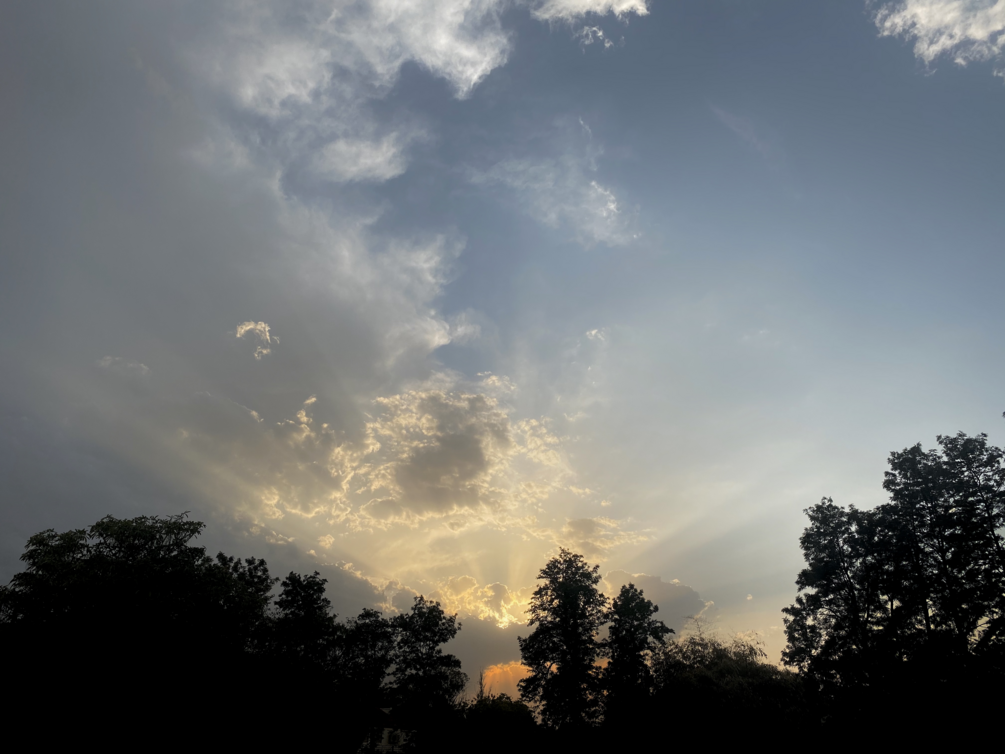 Photograph of a gleam of light shining through the sky